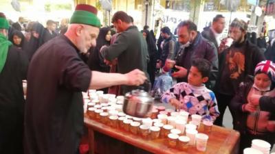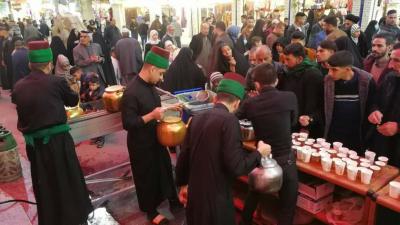 Second: The establishment of a procession to offer tea to the visitors to the sanctuary of Imam Al-Hussayn and his brother Aba Al-Fadl Al-Abbas (peace be upon them both). This is also an annual activity of the Sayed servants, which, despite its simplicity, is witnessing a great turnout.