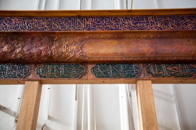 Akasema: “Miongoni mwa kazi ambazo zinakaribia kuisha pia ni ufito wa maandishi ya shairi lisemalo (Ewe bwana wa mabwana ewe mtoto wa Mstwafa.. ewe hoja ya Mola kwako dahari imetosheka), nalo ni miongoni mwa mashairi yaliyo andikwa na Ali Swafaar Karbalai msaidizi wa makamo katibu mkuu wa Atabatu Abbasiyya, juu ya kila dirisha kuna ubeti mmoja, pamoja na ufito maalum wa maandishi ya Quráni yaliyo andikwa aya isemayo (Allah ni nuru ya mbinguni…) hadi: (…na likatajwa humo jina lake, vinamtakasa humo asubuhi na jioni), unao fuatiwa na ufito wa mapambo wenye urefu wa (m3.80) na kimo cha (sm32) ulionakishiwa mapambo ya mimea na mstari wa aya ya Quráni kazi ambayo pia inakaribia kukamilika”.