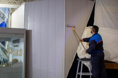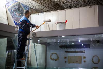 - تنظيف شامل لكلّ المقتنيات المتحفيّة بإشراف كادرٍ متخصّص وباستخدام موادّ خاصّة.