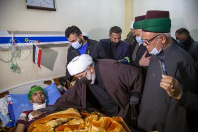اختتم وفدُ العتبتَيْن المقدّستَيْن الحسينيّة والعبّاسية جولته التي أجراها واستمرّت ليومَيْن، وكانت بمحورَيْن الأوّل تقديم واجب التعزية والمواساة لعوائل وذوي الشهداء، الذين طالتهم يدُ الإرهاب عبر التفجير الانتحاريّ المزدوج في ساحة الطيران في العاصمة بغداد، يوم الخميس الفائت (7 جمادى الآخرة 1442هـ) الموافق لـ(21 كانون الثاني 2021م)، والثاني تفقّد جرحى التفجير الراقدين في مستشفى الكندي.