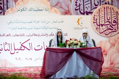 Cela a été suivi par la prestation du serment de remise des diplômes devant le sanctuaire d'Aba al-Fadl al-Abbas (que la paix soit sur lui), après quoi ils se sont dirigés vers les rituels du Ziyarat en groupe. La cérémonie s'est ensuite conclue par un chant à propos de l'anniversaire de naissance de Dame az-Zahra (que la paix soit sur elle), et la conclusion était avec Dua al-Faraj de l'Imam de l'Ordre et du Temps (qu'Allah hâte sa sainte réapparition).
