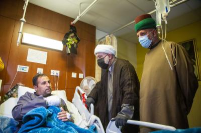هیاتی از آستان قدس عباسی با مجروحان حشد الشعبی که در پی حمله تروریستها به جزیره العیث واقع در استان صلاح الدین در بیمارستان تخصصی الکفیل بستری شده اند، ملاقات کرد.