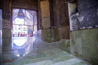 Er fügte hinzu: "Eine wichtige Etappe ist abgeschlossen, nämlich die Verkleidung des Bodens dieses Tores für den Bereich, der sich vom Haupteingang des Tores bis zum Heiligtum erstreckt, zusätzlich zur Fertigstellung aller Arbeiten der Verkabelung der Haltesysteme und der Fertigstellung der Verstärkung der Wände und anderer Teile sowie der Fertigstellung der Verkleidung des Teils, der den Boden des Tores trennt, bis zu dem Bereich, der in der letzten Etappe dieser Arbeiten mit Kashi Karbala'i bedeckt werden wird.
