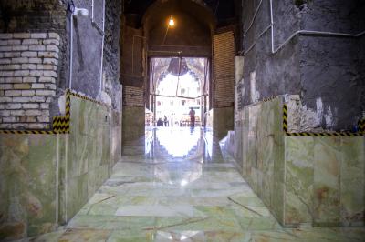 Er erklärte: "Die Verkleidung wurde mit natürlichem Alabaster ausgeführt, und bei dieser Arbeit wurden viele Faktoren berücksichtigt, von denen der wichtigste darin besteht, die Höhe so zu gestalten, dass sie für das Betreten des heiligen Heiligtums geeignet ist, so dass ein Bewegungsfluss entsteht. Nur die Verkleidung der Wände mit Kashi Karbala'i bleibt in diesem Tor, wo die Stellen für die Befestigung vorbereitet und mit Profilen mit speziellen ornamentalen Formen gekennzeichnet wurden, die es umgeben werden. "