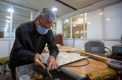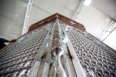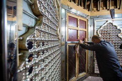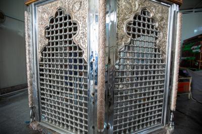Le Département de la fabrication des grilles des sanctuaires saints et de leurs portes affilié au sanctuaire d'al-Abbas (p) a annoncé que son personnel travaillant sur la grille du sanctuaire de la main gauche d'Abu al-Fadl al-Abbas (paix être sur lui) a atteint plus de 90% de sa réalisation totale, et le travail continue toujours d'accomplir ce qui reste comme prévu. Il l'a à la fois artistiquement et chronologiquement.
