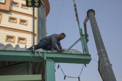 تُنجز وحدةُ الكهرباء التابعة لشعبة الصيانة في قسم ما بين الحرمين الشريفين، العديد من الأعمال الخاصّة بالإنارة والتأسيس الكهربائيّ داخل المدينة القديمة، من خلال ما تبذله من جهودٍ لإدامة وإعادة تأهيل عدّة مواقع.
