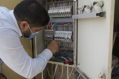 وأضاف: "يكون عملنا من خلال دراسة الموقع المراد العمل فيه وإعداد خططٍ دقيقة، من ثمّ الشروع بأعمال التأسيسات فضلاً عن أعمال الإدامة والصيانة الكهربائيّة التي نقوم بها في كلّ موقع".