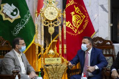 Baada ya kufanya ibada ya ziara na kusoma dua Mheshimiwa waziri amekutana na katibu mkuu wa Atabatu Abbasiyya tukufu Mhandisi Muhammad Ashiqar, aliye eleza mkakati wa afya ulioandaliwa na Atabatu Abbasiyya katika ziara ya Shaábaniyya, pamoja na kueleza hatua zinazofanywa na Atabatu Abbasiyya katika kusaidia taasisi za afya zilizo chini ya serikali katika vita ya kupambana na maambukizi ya virusi vya Korona, ikiwa ni pamoja na kujenga vituo vya kuhudumia watu walio ambukizwa virusi vya Korona kwenye mikoa tofauti, na misafara ya kupuliza dawa, ambayo bado inaendelea, pamoja na mambo mengine mengi.