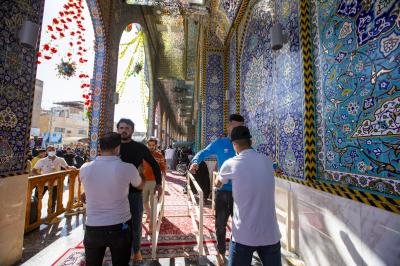 Le service du sanctuaire de l'Imam al-Mahdi (que Dieu hâte son retour honorable), qui est affilié au sanctuaire de saint al-Abbas, fait des efforts extraordinaires et doubles lors de la ziyarat de mi-cha’ban, Vous les voyez courir au service des visiteurs dans le cadre de mesures sanitaires et préventives strictes, car chacun a mobilisé ses capacités pour offrir les meilleurs services et moyens de confort aux visiteurs honorables.