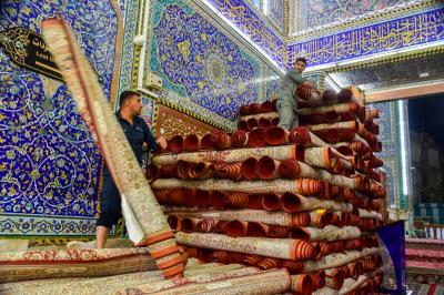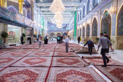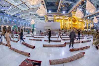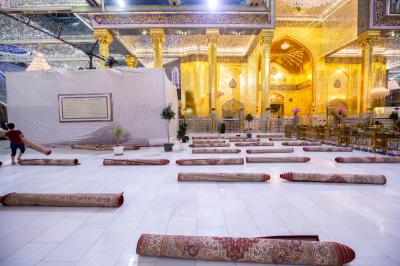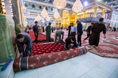 The Department of the Care of the Holy Courtyard in the al-Abbas's (p) Holy Shrine finished furnishing the courtyard of Aba al-Fadl al-Abbas (peace be upon him) with (1000) new carpets of luxurious quality in preparation for the blessed month of Ramadhan. These works are in parallel of furnishing the Holy Sanctuary with new carpets of consistent colors commensurate with the sanctity of the holy shrine.