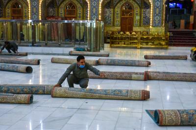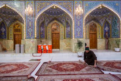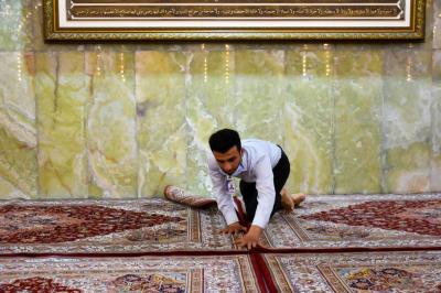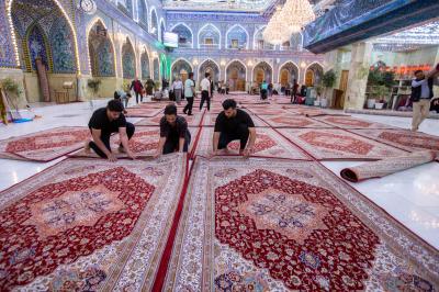The assistant head of the department, Mr. Zain Al-Abidin Al-Qurayshi, told Al-Kafeel Network: “The furnishing work of the new carpets is carried out periodically, according to a schedule for these works and the condition of the carpets. After the Ziyarat of mid-Sha'ban and in preparation of the holy month of Ramadhan, our staff along with the staffs of the Divisions of Sayed Servants and of the Care of the Holy Sanctuary, in addition to volunteers from other departments, have furnished the holy courtyard of Aba al-Fadl al-Abbas (peace be upon him) with new carpets."