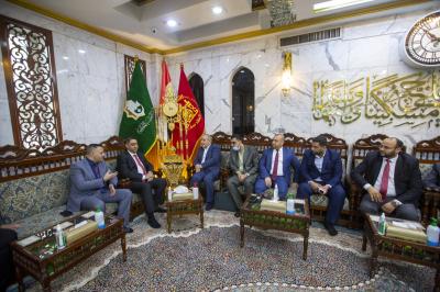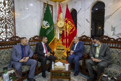 وبعد إداء مراسم الزيارة التقى المگوطر والوفد المرافق له بعضو مجلس ادارة العتبة المقدسة الأستاذ جواد الحسناوي وبعض رؤساء اقسامها، حيث استعرض الحسناوي خلال اللقاء ابرز المشاريع التي تنفذها العتبة المقدسة والتي تقدم الخدمات للزائر الكريم بوجه الخصوص والمجتمع بوجه العموم وفي مختلف المجالات.
