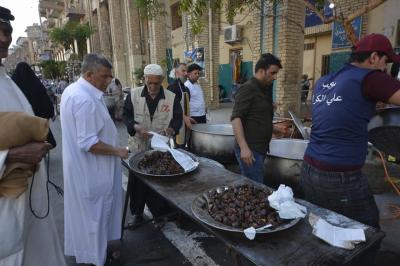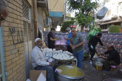 وذكر رئيسُ قسم الشعائر والمواكب والهيئات الحسينيّة التابع للعتبتين المقدّستين الحسينيّة والعبّاسية، الحاج رياض نعمة السلمان لشبكة الكفيل قائلاً: "في أيّام شهر رمضان المبارك تقوم المواكبُ الخدميّة بتقديم خدماتها من خلال إقامة موائد للإفطار وتوزيع الطعام على الزائرين، متّخذين من الطرق والمسارات التي يسلكها الزائرون والتي تمّ تحديدها من قِبل القسم منطلقاً لهذه الخدمة، فينصبون قبيل وقت الإفطار الموائد وتراهم يتسابقون لخدمة الزائر الصائم، كما كانوا يتسابقون لخدمة الزائرين أيّام الزيارات المليونيّة في محرّم والأربعين".