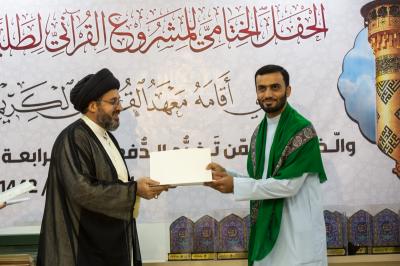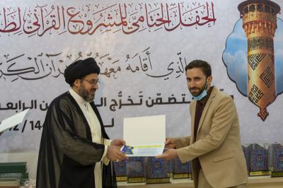Das Institut des Heiligen Koran, Zweigstelle Al-Najaf, hielt eine Abschlusszeremonie für das Koranprojekt für Studenten der Religionswissenschaften ab, das die Graduierung der vierten und fünften Chargen dieses Projekts beinhaltet.