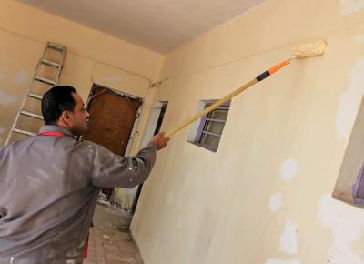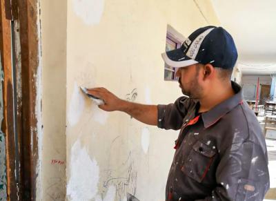 Er gab an: "Die Arbeiten umfassten auch das Streichen der Wände der Schule mit einer Fläche von schätzungsweise (600) Quadratmetern, nachdem sie vorbereitet und die alte und beschädigte Farbe entfernt worden war, außerdem wurde der mittlere Hof der Schule, der eine Fläche von (250) Quadratmetern hat, vorbereitet und verkleidet."
