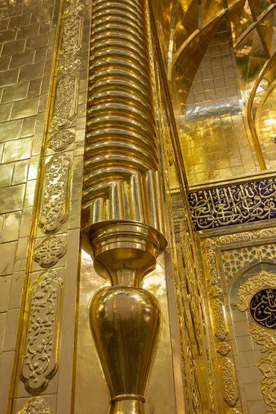 As for the director of the company executing these two projects, the Ard al-Quds Construction Contracting Company, Eng. Hamid Majeed, he added: “The Qibla gate to the Shrine of Aba Al-Fadl Al-Abbas (peace be upon him) has become a unique architectural masterpiece, as we have taken into consideration many matters, including the design touches that preserved the general architectural texture of the holy shrine, and the harmony between all the inscriptions and ornaments of the gate despite their abundance. As for the re-gilding of the walls of the large golden iwan, it also came as a complement to its first stage, which included the parts located on the shoulders of this left and right door, and it will further add the aesthetic aspect to the Holy Shrine and the preservation of its urban facilities, while preserving its architectural and heritage texture with a civilized imprint of durability and high efficiency."