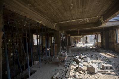 "La première phase du projet comprenait la préparation de plans, et après qu'ils aient été approuvés par l'administration de l'Université Al-Ameed, notre personnel a commencé la deuxième phase, dans laquelle nous avons démoli les cloisons internes et enlevé les déchets."