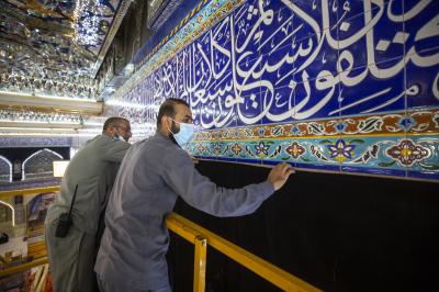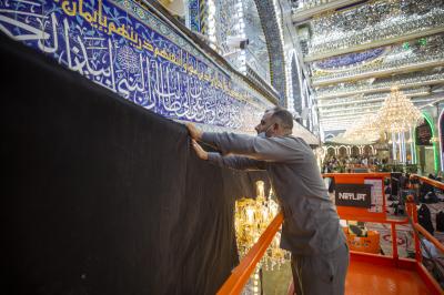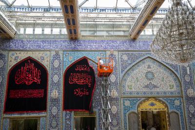 The assistant head of the department, Mr. Zain Al-Abidin Al-Quraishi, told Al-Kafeel Network, “The staff of our department and those who help them from the rest of the departments of the Holy Shrine, have started since last night to hang the banners of Ashura’s grief and solace, inspired from the words of Imam as-Sadeq (peace be upon him): "When the month of Muharram’s Moon appears, angels will open up the al-Hussayn’s bloody shirt in heavens, while it is torn by the strike of the swords, and simmered in blood. So we and our followers can see it, not by the eyes of our heads, but by the eyes of our hearts, therefore our eyes burst into tears."