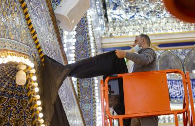 The staff of the Holy Shrine Care Department at the al-Abbas's (p) holy shrine began spreading signs of sadness throughout the corridors of the shrine of Aba al-Fadl al-Abbas (peace be upon him), in order to welcome the month of sorrows and the memory of the martyrdom of the beloved grandson of the Noble Prophet; Abu Abdullah al-Hussayn (peace be upon him), and his family and his Companions (peace be upon them).
