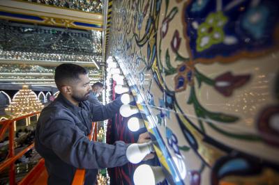 He added: "The works are carried out according to a special plan and according to the location of each piece without affecting any part it is attached to, because it is installed by a special adhesive that is easy to remove later. These works are completed before the first night of Muharram."