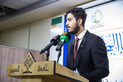 افتُتحَ المُلتقى بتلاوة آياتٍ بيّناتٍ من القرآن الكريم، ليقف الحضور بعدها تحيّةً لنشيد الوطن ونشيد (لحن الإباء) الخاص بالعتبة المطهّرة، تلتها قراءةُ السورة المباركة الفاتحة ترحّماً على أرواح شهداء العراق، ليرتقي المنصّة بعدها المعاونُ التعليميّ للقسم الدكتور حسن داخل الحسناوي، لإلقاء كلمة القسم التي جاء فيها: "أُنشِئت مجموعةُ العميد التعليميّة لتهيّئَ السبيل للسعي لطلب العلم، وتبسط الطريق لطلّابه وسالكيه، فآلت على نفسها أن توفّر بيئةً تربويّةً علميّةً رفيعة تقدّم الأجود والأمثل، وتتطلّعَ إلى الأشمل والأكمل ليكون متعلّمُها الأحسن والأفضل".