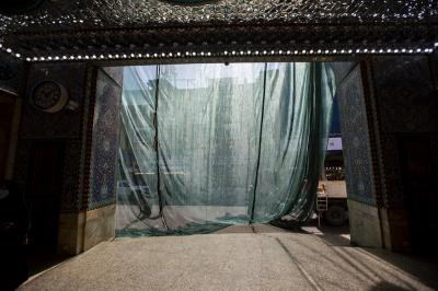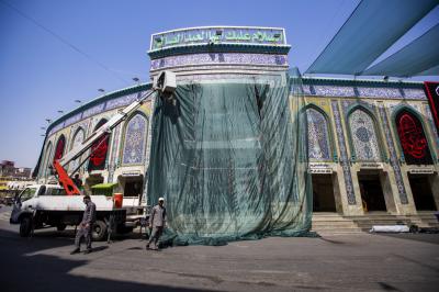 Le personnel du Département d'entretien technique et de construction du Sanctuaire sacré d'al-Abbas (p), sous la direction du Secrétariat général, a placé ce tissu [de Saran] qui bloquerait ou réduirait l'effet de la lumière du soleil, dans la rue adjacente à la cour sacrée de son point de rencontre avec la zone adjacente au point de contrôle de Hawraa, au nord du sanctuaire, du sanctuaire sacré à l'entrée la plus proche de la porte de la Qibla sur son côté gauche.