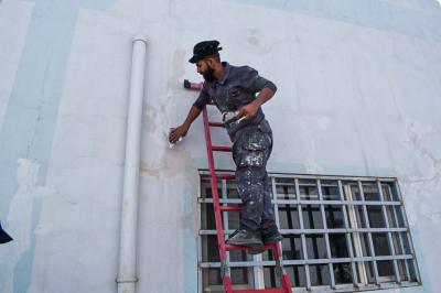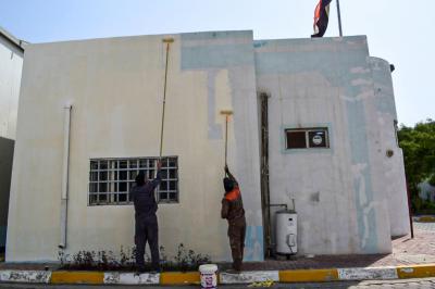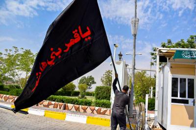 مبيّناً: "كذلك شملت الأعمال نشر وتعليق جميع مظاهر الحزن والسواد على المجمّع، ورفع رايات العزاء الحسينيّ، وتجهيز القاعات التي تبلغ مساحة كلّ واحدةٍ منها (150م2) بمستلزمات الخدمة، لتكون مبيتاً للمتطوّعين أو الزائرين، وكذلك قمنا بصبغ واجهة المجمّع وتغيير لونها بالتعاون مع قسم الصيانة والإنشاءات الهندسيّة".