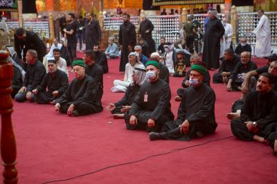 این مراسم همچنین شاهد حضور گسترده خادمان و زائران حرم مطهر و قرائت زیارت عاشورا، ذکر مصیبت و لطم توسط مداح اهل بیت حمید التميمي است.