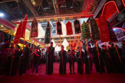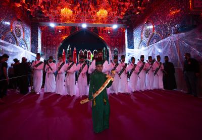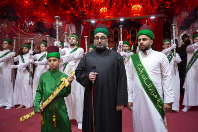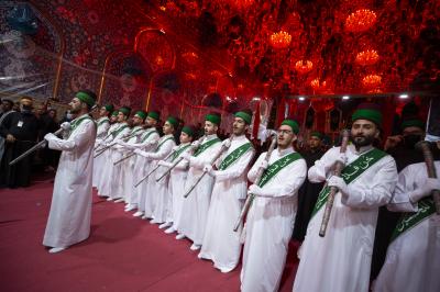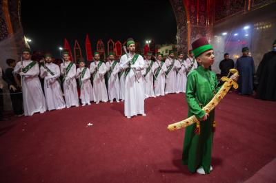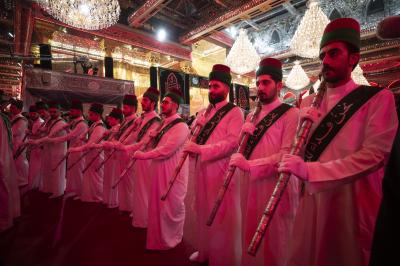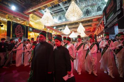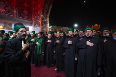 ہر سال کی طرح اس دفعہ بھی شب عاشور روضہ مبارک امام حسین(ع) اور حضرت عباس(ع) کے سادۃ الخدم کا ماتمی جلوس کربلا میں برآمد ہوا، جلوس میں شامل تمام سادة الخدم نے اپنا روایتی لباس پہنا ہوا تھا اور وہ اپنے جدِّ امجد امام حسین(ع) کی شہادت پر نوحہ خوانی اور ماتم کر رہے تھے۔