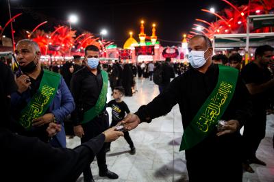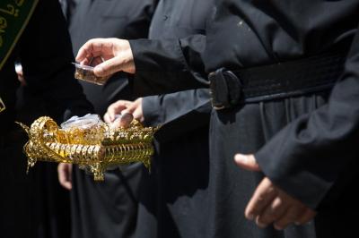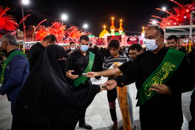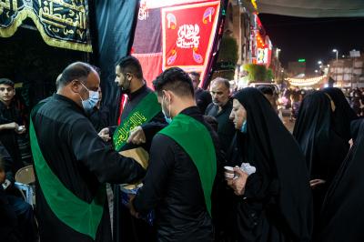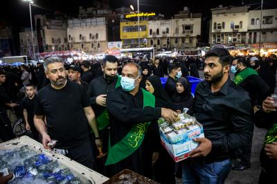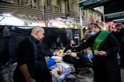Le personnel de l'Unité de plantation et d'ornement du département de la place entre les deux sanctuaires ont récolté une grande quantité de dattes sur les palmiers entre les deux sanctuaires de l'imam al-Hussein et de son frère Aba al-Fadl al-Abbas (paix être sur eux), et les a distribués aux visiteurs en deuil, aux cortèges et aux comités Husseinite.