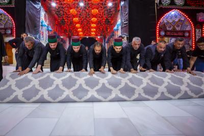 وفي السياق نفسه أوضح معاونُ رئيس قسم رعاية الصحن الشريف الأستاذ زين العابدين عدنان، أنّ: "الصحنّ المطهّر لمرقد أبي الفضل العبّاس(عليه السلام) أُجريت عليه هذه الأعمال بعد أن تمّ رفع ما وُضِع من سجّادٍ خاصٍّ بأيّام العزاء العاشورائيّ، ورزمه وإرساله إلى معمل الغسل التابع للعتبة العبّاسية المقدّسة، حيث بوشر بأعمال تنظيفه بصورةٍ تتابعيّة حسب كلّ مقطعٍ منه، وبعد الانتهاء تمّ فرشه بالسجّاد الجديد وإعادة محتويات الصحن كالقواطع وحاملات كتب الزيارة والأدعية، وصولاً إلى إعادته لوضعه الطبيعيّ ما قبل الزيارة".
