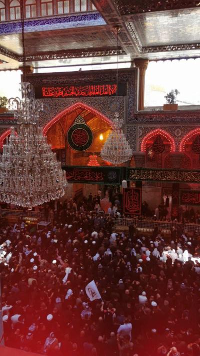 وكانت الحشود المشيِّعة قد بدأت مراسيم تشييع الفقيد عند مرقد جدّه الإمام الحسين(عليه السلام)، حيث كان في استقبالهم المتولّي الشرعيّ للعتبة الحسينيّة المقدّسة، سماحة الشيخ عبد المهدي الكربلائيّ (دام عزّه) وخَدَمةُ المرقد الطاهر ومسؤولوه، حيث أجريت مراسيمُ الزيارة والدعاء عند الضريح الطاهر.
