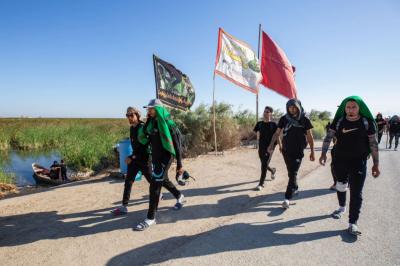 دوسری جانب میسان گورنریٹ سے زائرین کی آمد جاری ہے ، اور ان کے لہراتے علم سماوی کے آسمان کو گلے لگاتے ہوئے دیوانیہ کی جانب محو سفر ہیں اور وہاں سے القاسم اور پھرحلہ یا نجف اشرف سے ہوتے ہوئے کربلا معلی پہنچیں گے۔