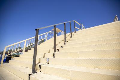 The width of the bridge is of 8m divided in two parts, each of them is of 4m, its height is more than 4m, to which is added pieces of wood, the length of each piece is 2,40m with a width of 1,22m, linked to its both sides to ensure the safety of the visitors when they are passing.