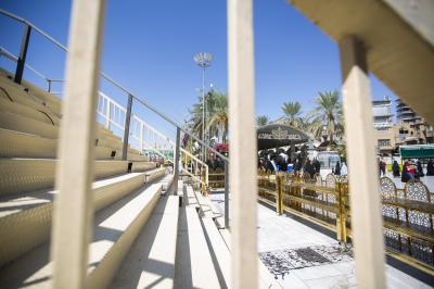 Before every Ziyarat Arba'een the technical staff working in the Engineering Maintenance Department at the Al-Abbas's (p) holy shrine erect an iron bridge in front of the gate of Imam al-Hassan (peace be upon him) leading to the holy shrine of Aba al-Fadl al-Abbas (peace be upon him), which a temporary bridge that consists of many iron parts that are installed according to a specific mechanism.