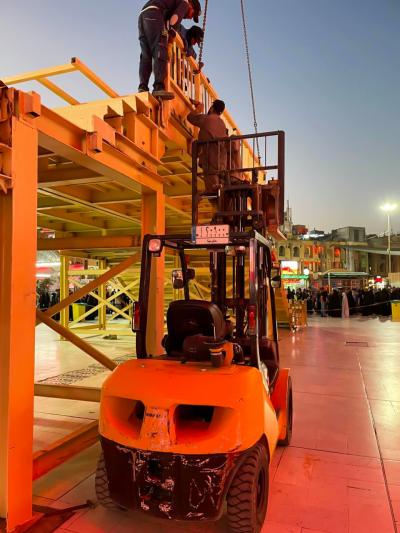- Eriger le pont provisoire pour le passage des pèlerins de la ziyarat de l’Arbaeen devant la porte de l'Imam Hassan (que la paix soit sur lui), en collaboration avec la division de la forge de notre département.