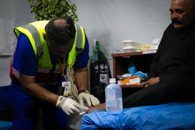 Pour sa part, le responsable de la Division des affaires médicales et le superviseur de son plan dans ce domaine, le Dr Osama Abdel Hassan, a ajouté : « Il existe un certain nombre de services qui sont fournis aux visiteurs, qui contribuent à effectuer leurs cérémonies de ziyarat avec facilité, et parmi ces services figurent les services médicaux, lorsqu'un espace lui a été alloué et qu'il s'est intensifié récemment et pour la deuxième année consécutive, en raison de la situation sanitaire exceptionnelle, et pour cela, la Division, en coopération avec l'Académie Al-Kafeel pour la formation et les secours médicaux, a préparé des équipes d'évacuation sanitaire qui se chargent de traiter et d'évacuer les cas qui en ont besoin, et de leur apporter l'assistance nécessaire. ».