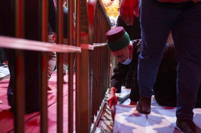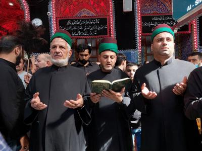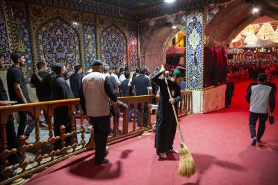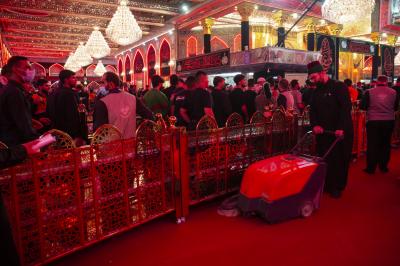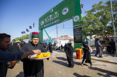 خادمان سادات آستان قدس عباسی برای خدمت به زائران اربعین در صحن مطهر حضرت ابوالفضل عباس(علیه السلام)و در همه زائرشهرها مستقر هستند.