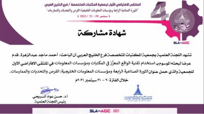 این مشارکت به وسیله پژوهش ارائه شده توسط احمد ماجد عبدالزهره، مدیر بخش کارگاه دیجیتال وابسته به مرکز فوق تحت عنوان (استفاده از تکنولوژی واقعیت افزوده در کتابخانه ها و موسسات اطلاع رسانی) صورت گرفت.