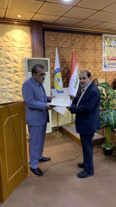 من ثَمَّ تمَّ توزيعُ الشهاداتِ التقديريَّةِ للمشاركين في إقامةِ هذه الندوةِ والمُسَاهِمين في انعقادِهِ .