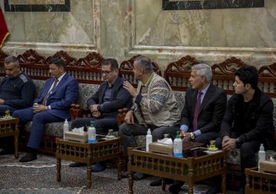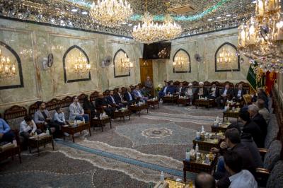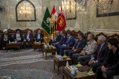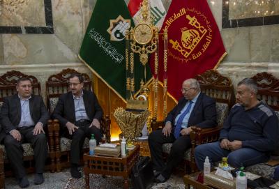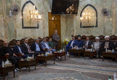 Während seines Treffens mit einer Gruppe irakischer Kalligraphen, die an der 2. internationalen Ausstellung zum ästhetischen Erbe teilgenommen haben, die von der Abteilung für Human- und Islamwissenschaften organisiert wurde. An dem Treffen nahmen der stellvertretende Generalsekretär des Heiligen Abbassitischen Schreins und einige Mitglieder des Verwaltungsrats in der Ehrenhalle des Schreins teil.
