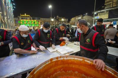 The head of the host restaurant department, Engineer Adel al-Hamami, told Al-Kafeel Network, "The host restaurant and its staff work throughout the year, and there are seasons in which the service is doubled, and the efforts made to serve the visitors are greater. Among them is the Ziyarat of Friday eve and day, as the preparation starts early in the morning, thousands of meals are provided, which are distributed after the noon prayer through the external port of the host restaurant, and the service continues to dinners which meals are doubled because of the increase in the number of visitors, in addition to light meals that are distributed between these two meals, such as fruits, fast food, sweets, tea, pastries and juices, with continuous water distribution.”