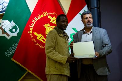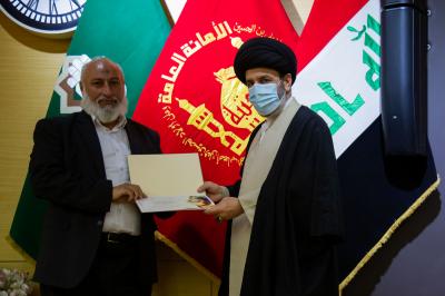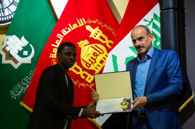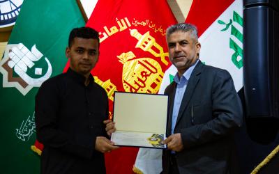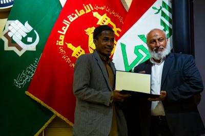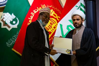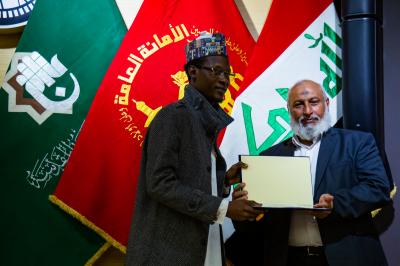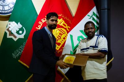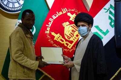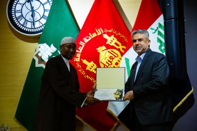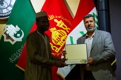 La cérémonie de clôture du cours est venue en l'honneur de l'anniversaire de naissance de Dame Zainab (que la paix de Dieu soit sur elle), et s'est tenue ce vendredi matin dans la salle Imam Hassan (la paix soit sur lui) au sanctuaire saint al-Abbas (p), en présence d'un certain nombre de membres de son conseil d'administration et de chefs de départements, en plus des étudiants africains participant à la session.