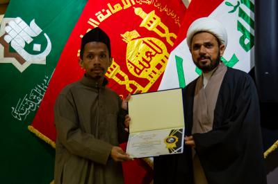 Le Centre d'études africaines du Département des affaires intellectuelles et culturelles a conclu le deuxième cours coranique pour les étudiants en sciences religieuses du continent africain, qui s'est tenu en coopération avec l'Académie scientifique du Saint Coran au Sanctuaire sacré, intitulé au nom de l’imam Al Hassan Al Mojtaba (p), et a compris des cours et conférences dans la lecture correcte du Saint Coran et de sa récitation et de son écriture.