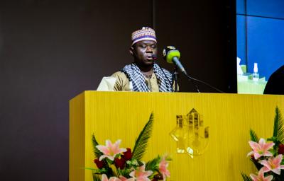 Ensuite, Cheikh Abdullah Yehuda, l'un des participants au cours, a présenté au Centre d'études africaines un généreux Coran qu'il a écrit de sa propre main après l'avoir complètement mémorisé.