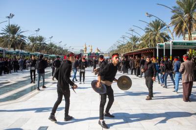 The starting point of these processions, some of which presented a symbolic coffin of Lady az-Zahra (peace be upon her), started from the vicinity of the holy shrine of Aba al-Fadl al-Abbas (peace be upon him) to the shrine of Imam al-Hussayn (peace be upon him), passing through the square between the two Holy Sanctuaries to hold a condolence and lamentation council there.