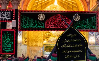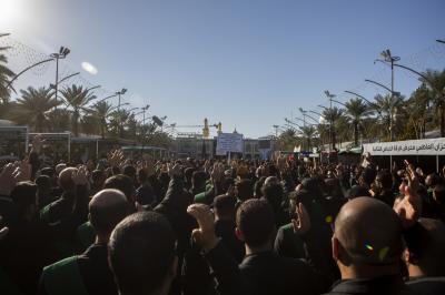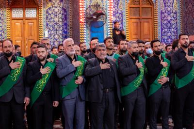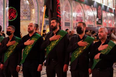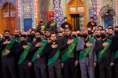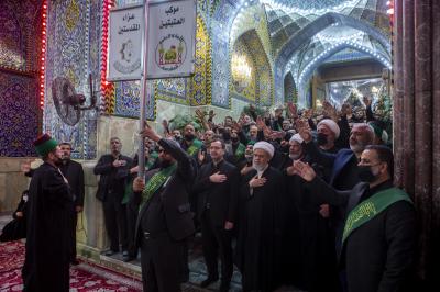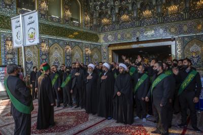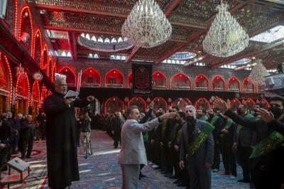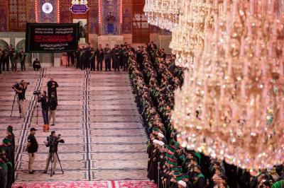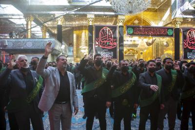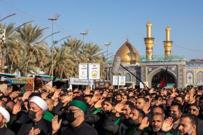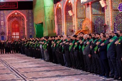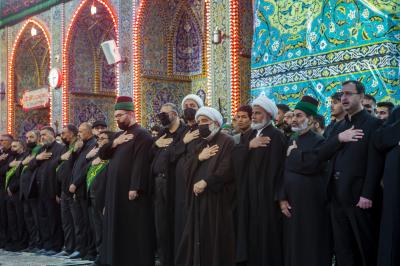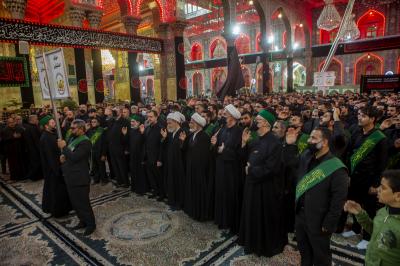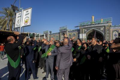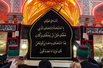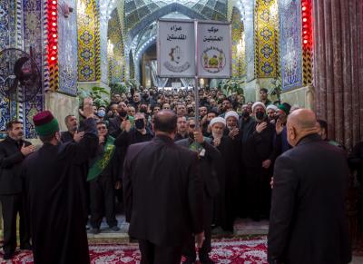 Maukibu ilipokaribia kuingia katika malalo ya Imamu Hussein (a.s) ilipokewa na watumishi wa malalo hiyo na kuungana pamoja nao, wakafanya kwa pamoja ibada ya ziara halafu wakafanya majlisi ya matam na kaswida zinazo muhusu mtoto wa Mtume Muhammad (s.a.w.w) na mambo yaliyo mtokea kabla ya kifo chake hadi kufikia kifo chake, hakika alidhulumiwa na akafa akiwa kavunjika mbazi yake.