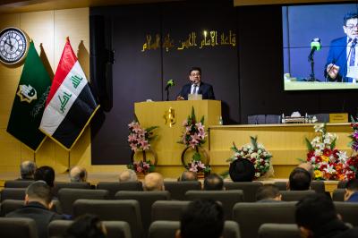 Nadwa imefunguliwa kwa Qur’ani, iliyofuatiwa na usomaji wa surat Fat-ha kwa ajili ya kuwarehemu mashahidi wa Iraq, kisha tukasikiliza wimbo wa taifa na wimbo wa (Lahnul-Ibaa).