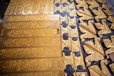 Akabainisha kuwa: “Utiaji wa dhahabu (ya kiwango cha 24 na usafi wa 99.9) umehusisha fito za mapambo na ufito wa maandishi ya ziara, na uwekaji wa mina umehusisha sehemu ya chini ya maandishi ya shairi na Qur’ani, na sehemu zingine pia zimetiwa dhahabu”.