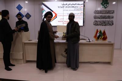 Le Centre d'études africaines du Département des affaires intellectuelles et culturelles du sanctuaire sacré d'al-Abbas (p) a organisé un colloque de recherche spécialisé sur les affaires africaines, dans la salle du Centre culturel Murtada du sanctuaire sacré du gouvernorat de Najaf, et en présence d'un certain nombre d'étudiants africains en sciences religieuses et d'un groupe de spécialistes et d'universitaires et chercheurs intéressés par les affaires africaines.